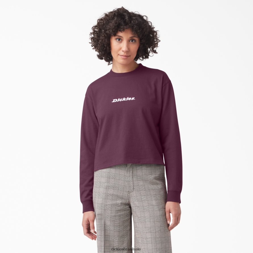 vestuário Dickies camiseta cropped manga longa loretto vinho de uva (gw9) mulheres V2FZ462160