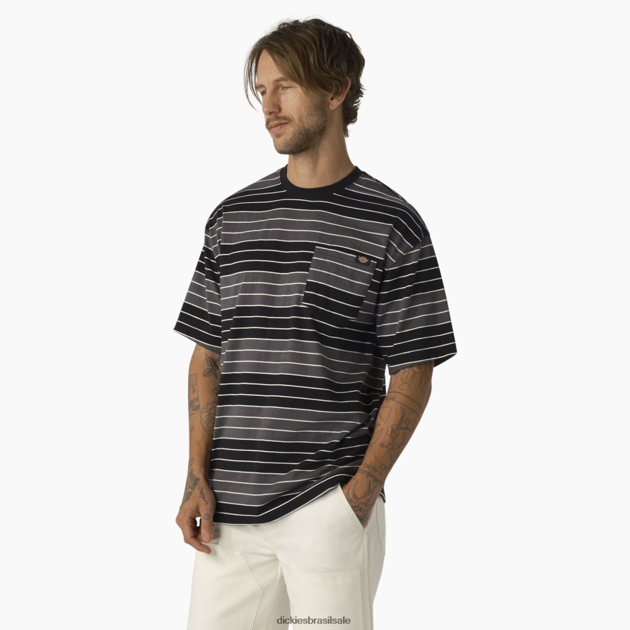 vestuário Dickies camiseta de bolso listrada de ajuste relaxado faixa preta/branca tonal (tsh) homens V2FZ46747
