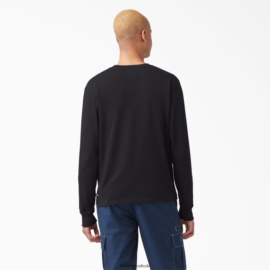 vestuário Dickies camiseta de manga longa com logo de skate preto (kbk) homens V2FZ46884