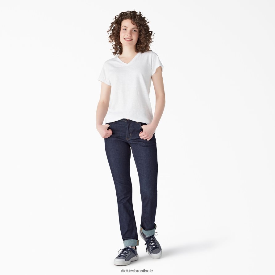 vestuário Dickies camiseta gola V manga curta branco (o que) mulheres V2FZ462068