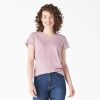 vestuário Dickies camiseta gola V manga curta íbis escarlate (s2s) mulheres V2FZ462066