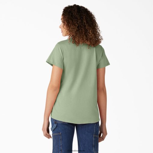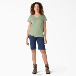 vestuário Dickies camiseta gola V manga curta verde celadon (c2g) mulheres V2FZ462060