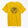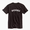mantenha-o simples e confortável em nossa camiseta estampada com logotipo de bloco. as características incluem uma gola de malha com nervuras, 100% algodão macio e o logotipo da letra dickies no peito.