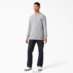 vestuário Dickies camiseta henley manga longa cinza urze (hg) homens V2FZ46698