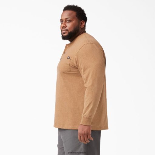vestuário Dickies camiseta henley pesada mesclada manga longa urze de pato marrom (bdh) homens V2FZ46774