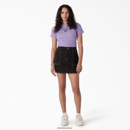 vestuário Dickies camiseta infantil cortada com estampa de borboleta rosa roxa (ur2) mulheres V2FZ462137