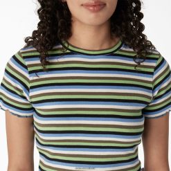 vestuário Dickies camiseta infantil listrada cropped listra mint/militar explorer (nts) mulheres V2FZ462077