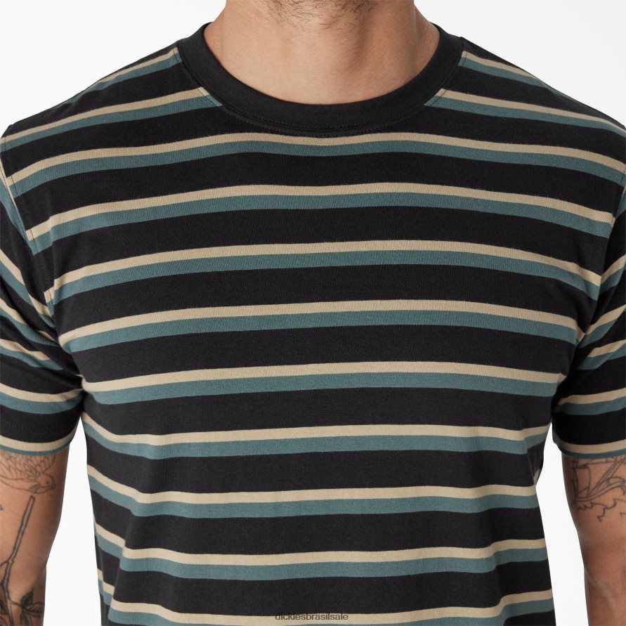 vestuário Dickies camiseta listrada de skate faixa preta/lincoln verde (ksg) homens V2FZ46771