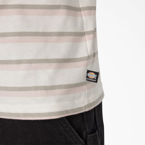 vestuário Dickies camiseta listrada de skate lótus listra rosa/branca (tse) homens V2FZ46773