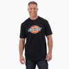 Represente seu dia de trabalho com a durabilidade confiável da camiseta estampada com logotipo tricolor de manga curta Dickies. esta camiseta pesada é tudo menos básica, com uma etiqueta na nuca sem etiqueta que evita atrito e um ajuste generoso, você alcançará o máximo conforto no trabalho ou no fim de semana. o pescoço e os ombros com fita impedem o desfiamento, para que você possa confiar que esta camiseta tem um grande poder de permanência.