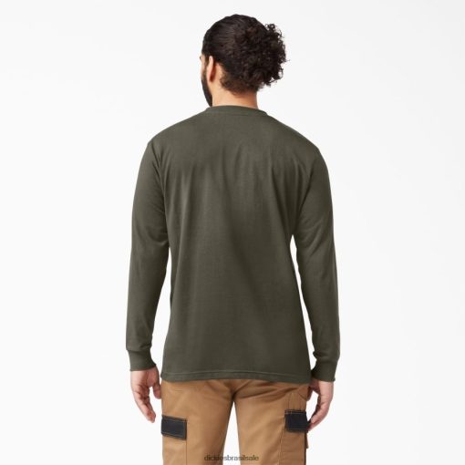vestuário Dickies camiseta pesada manga longa verde musgo (ms) homens V2FZ46611