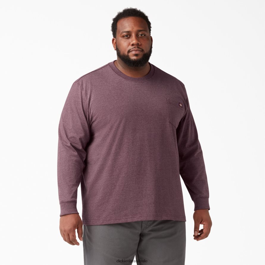 vestuário Dickies camiseta pesada mesclada manga longa Borgonha (byd) homens V2FZ46716