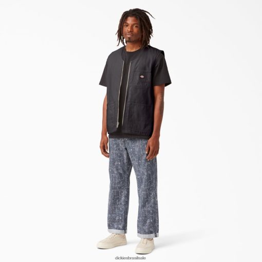vestuário Dickies colete de carpinteiro de pato lavado com pedra preto lavado (sbk) homens V2FZ461055