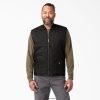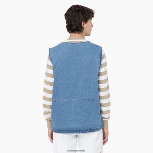 o colete jeans dickies tem um ajuste relaxado, estilo utilitário com zíper com detalhes e fabricação autênticos. este colete utilitário masculino possui três bolsos frontais funcionais e uma construção de jeans durável e leve.