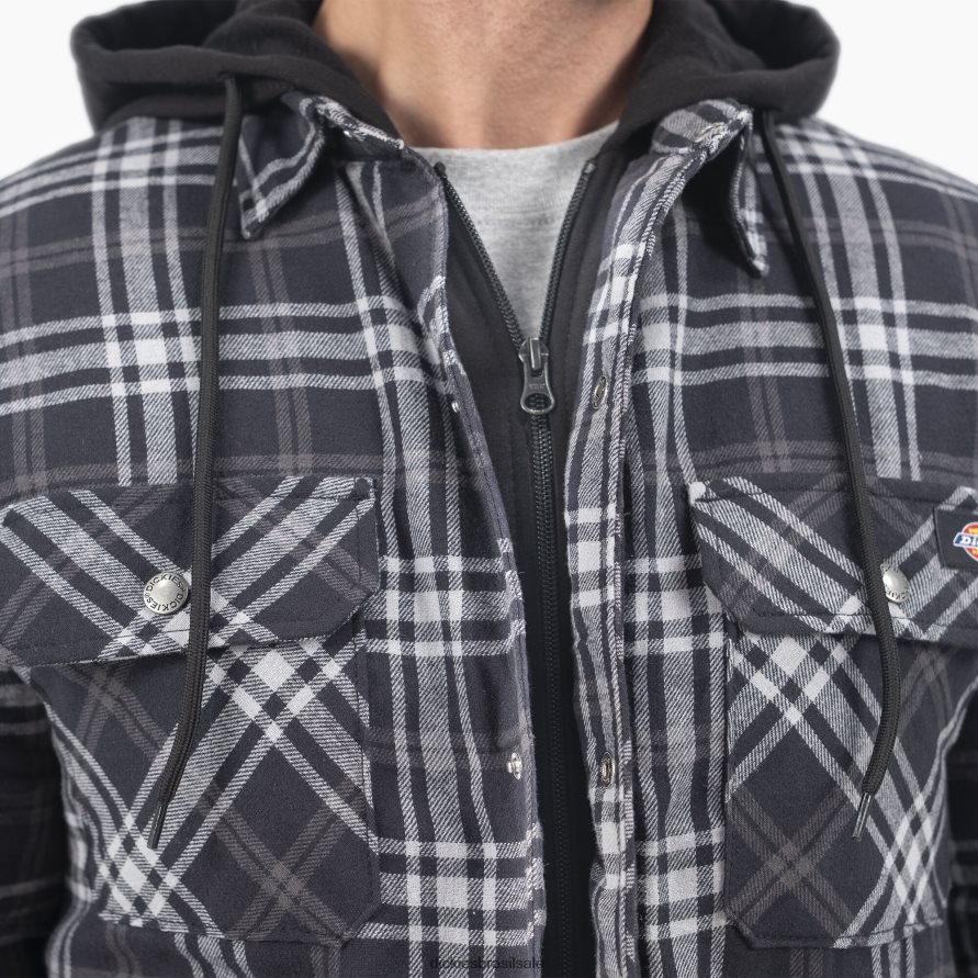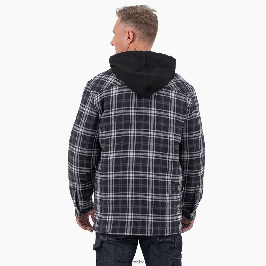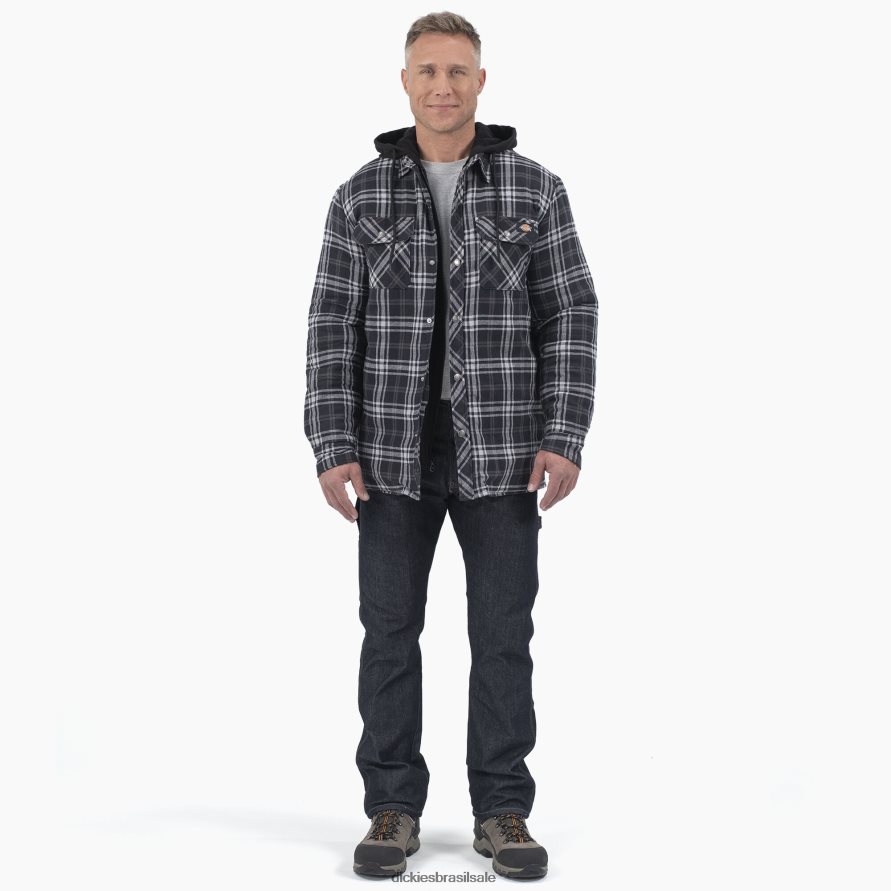 vestuário Dickies jaqueta de flanela acolchoada com capuz ícone de ajuste relaxado xadrez preto/carvão (wbc) homens V2FZ461009