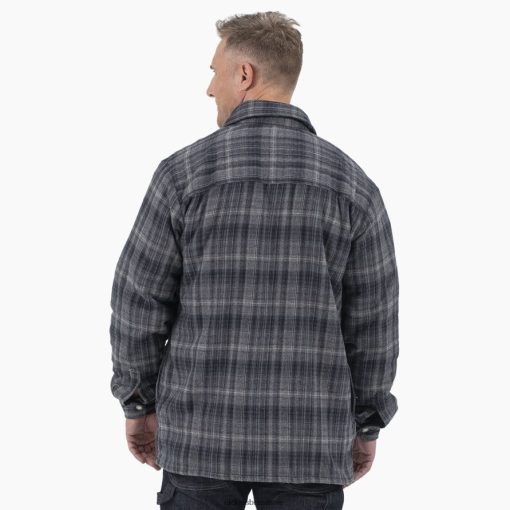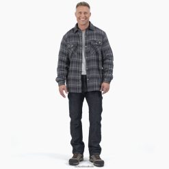 vestuário Dickies jaqueta de flanela forrada de lã de pilha alta xadrez ombre carvão/preto (a1t) homens V2FZ461076