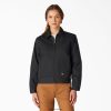estilo sem esforço e confiável por mais de 70 anos por gerações de mulheres que trabalham para moldar nosso mundo, a jaqueta eisenhower isolada Dickies oferece a silhueta clássica que foi redesenhada com o ajuste feminino em mente. abrace sua originalidade em um produto básico genuíno, com um exterior resistente à água com um revestimento de poliuretano para ajudá-lo a resistir aos elementos. a fabricação durável de algodão/poliéster oferece poder duradouro que pode ser exibido estação após estação. além disso, o forro interno acolchoado significa que você ficará aquecido e confortável, apesar da previsão do tempo. muita utilidade é oferecida através da prática manga de bolso e um bolso interno, garantindo um local para tudo o que você carrega. com generosa liberdade de camadas, use esta versão da jaqueta ike com ou sem zíper, ou sobre seu par favorito de babadores ou macacões para criar seu autêntico uniforme dickies.