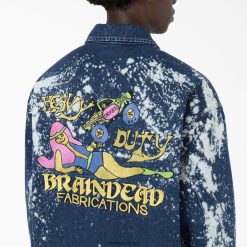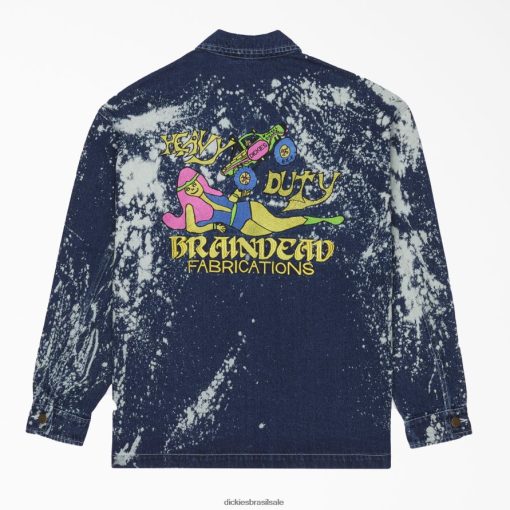 Dickies x Brain Dead combina o vestuário de trabalho de alta qualidade pelo qual somos conhecidos com os gráficos imaginativos que apenas cérebro morto pode criar. os estilos são dedicados a criativos de todos os tipos. esta jaqueta é feita de um tecido jeans durável e apresenta uma impressão branqueada, bolsos utilitários frontais grandes e arte com morte cerebral bordada nas costas. é completado com uma etiqueta de marca conjunta e botões de latão exclusivos da coleção.