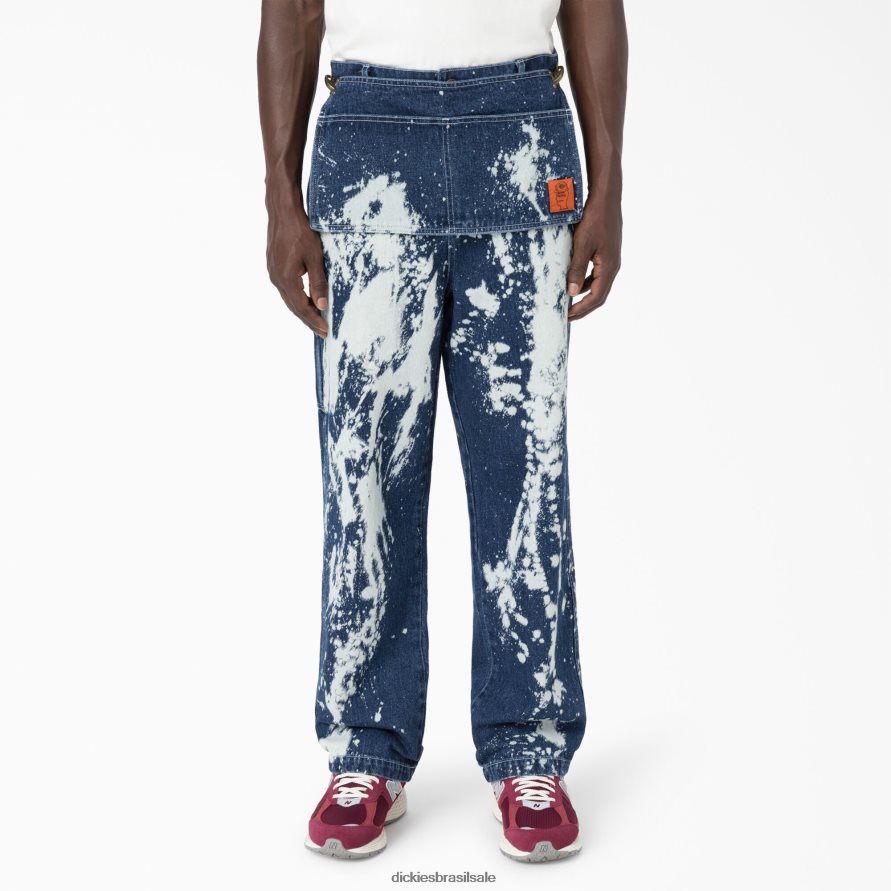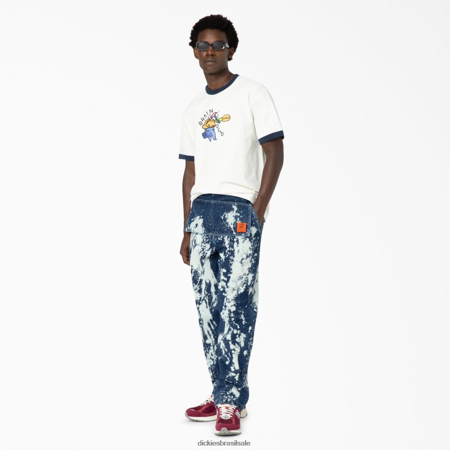 Dickies x Brain Dead combina roupas de trabalho e criatividade, combinando silhuetas utilitárias com obras de arte exclusivas de Brain Dead. estes jeans são projetados com uma frente de avental destacável para fornecer função para todos os tipos criativos. eles apresentam um ajuste relaxado e uma impressão branqueada para um toque criativo. um rótulo e um botão de marca compartilhada representam detalhes exclusivos que você só encontrará nos estilos dickies x brain dead.