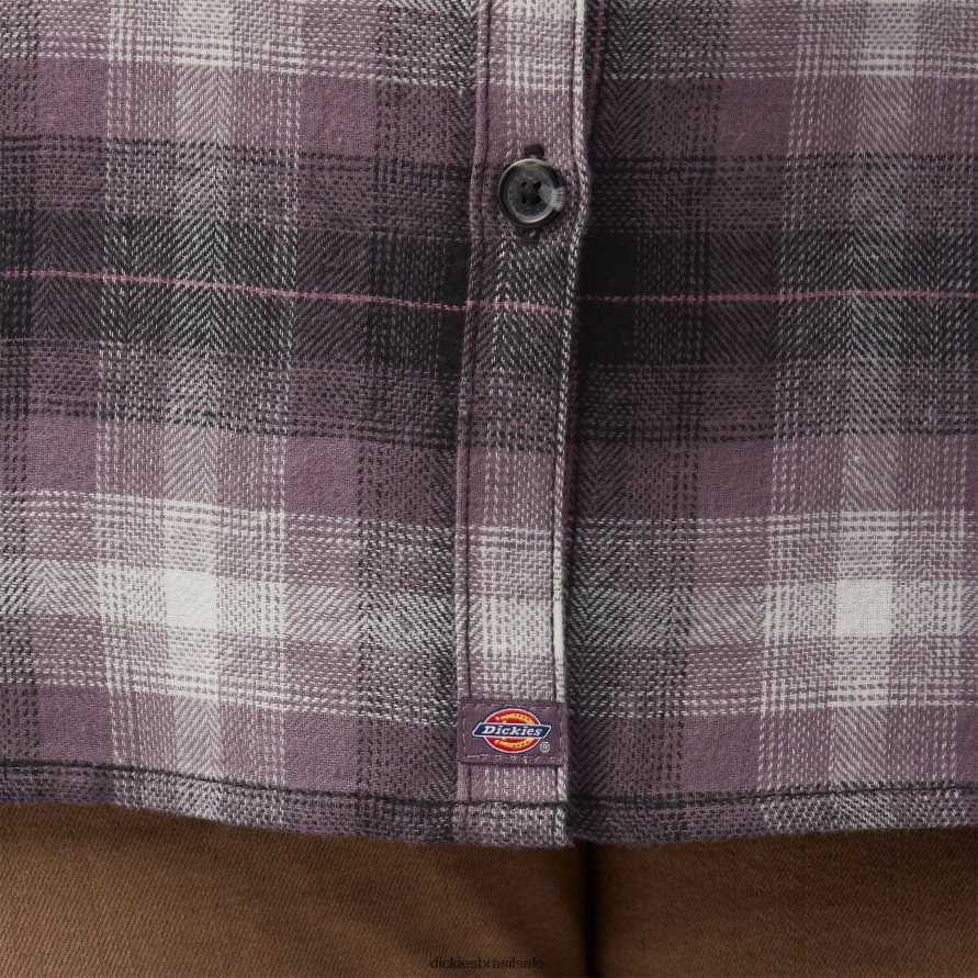 vestuário Dickies mais camisa de flanela xadrez de manga longa xadrez roxo empoeirado das terras altas (b2x) mulheres V2FZ462207