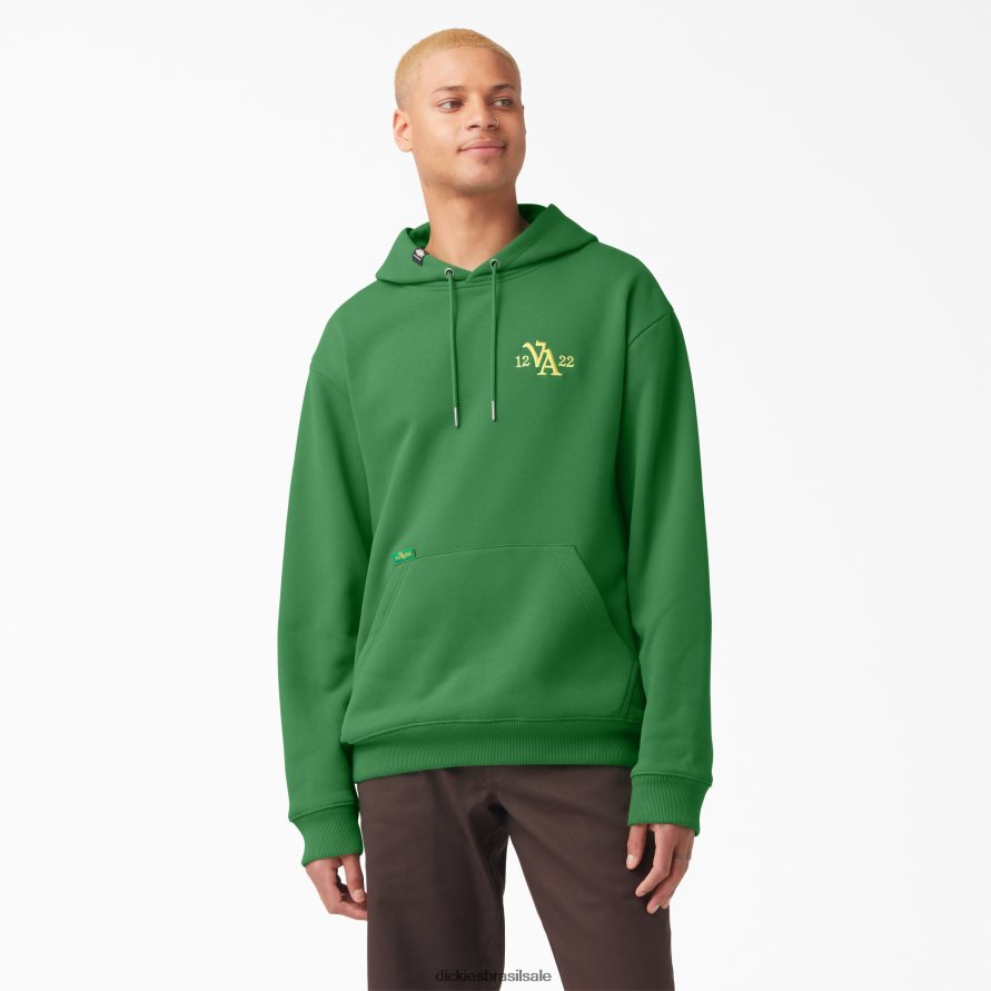 este moletom com capuz de algodão premium registra 280 gm e apresenta as iniciais de vincent alvarez comemorando seus primeiros dez anos com a equipe de skate dickies. disponível em preto og raiders ou verde palmeira – a pedido do governador. disponível enquanto durar o estoque.