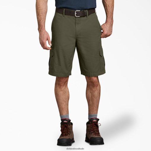 vestuário Dickies shorts cargo ripstop de ajuste relaxado 11″ verde musgo lavado (rms) homens V2FZ46431