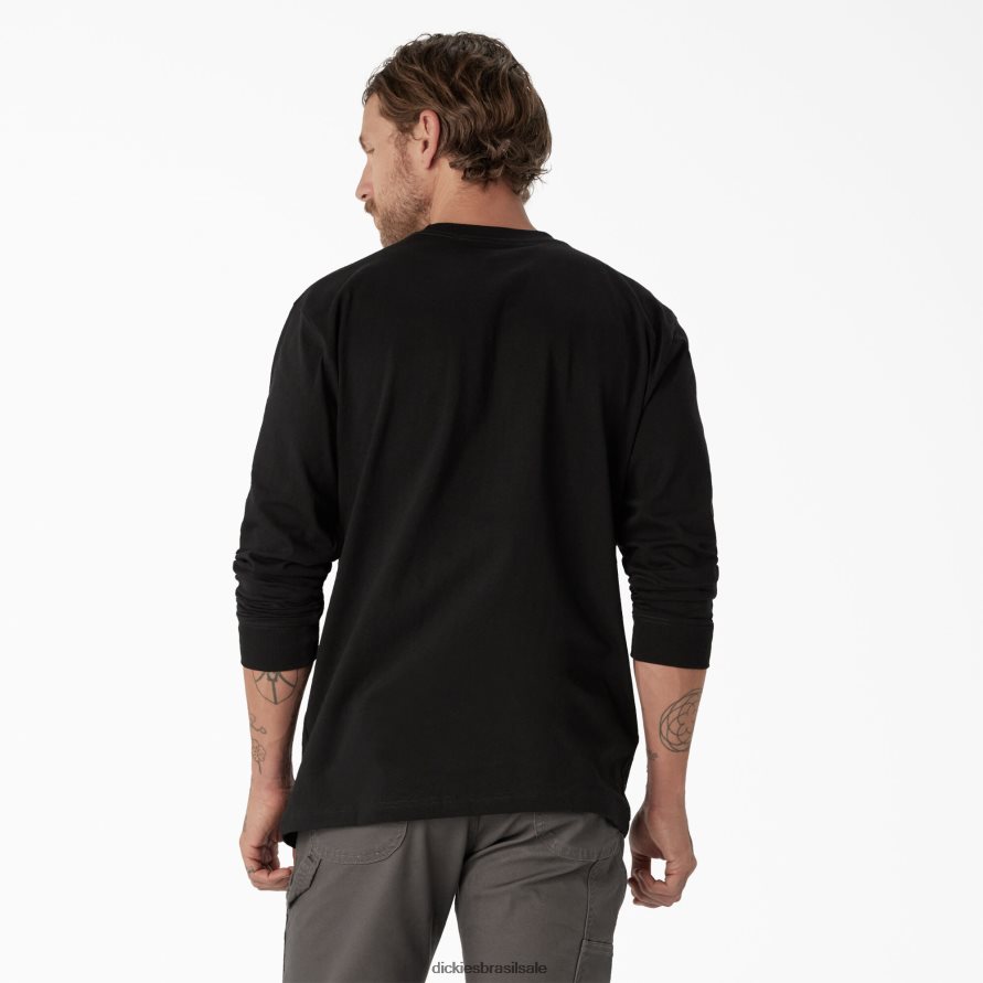 escolha o conforto dentro e fora do local de trabalho. Nossa clássica camiseta pesada masculina tem sido um item básico em roupas de trabalho por seu conforto e durabilidade. este estilo é finalizado com o logotipo dickies no peito e na manga. para um estilo que você pode confiar, use esta camiseta de manga comprida para passar por seus dias de trabalho mais longos e além.
